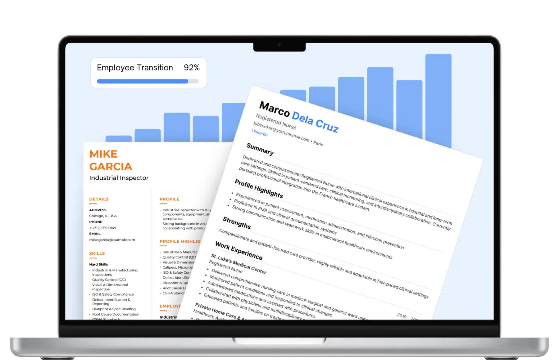 Leadership teams can view participation rates, resume completion, and readiness trends across impacted groups. This provides clear insight into engagement and progress without manual reporting.